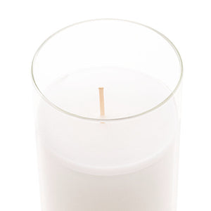 An elegant solution to the timeless and ubiquitous 'white pillar candle in a hurricane vase', this product is ready-made for your convenience. Featuring a wax pillar candle poured directly into a hurricane vase, this product is available in a range of heights, for an elegant and impactful staggered cluster effect. Sold individually.