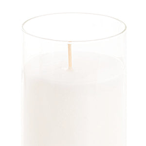 An elegant solution to the timeless and ubiquitous 'white pillar candle in a hurricane vase', this product is ready-made for your convenience. Featuring a wax pillar candle poured directly into a hurricane vase, this product is available in a range of heights, for an elegant and impactful staggered cluster effect. Sold individually