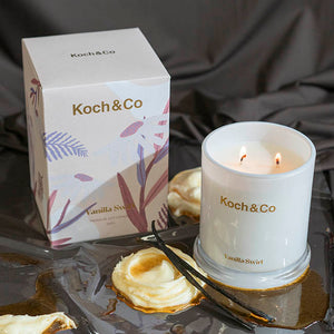 Indulgent and comforting, this double-wick Leisure Scented Soy Candle with Vanilla Swirl fragrance is made with natural soy wax. This premium candle has been infused with a long-lasting, sweet and creamy fragrance carefully formulated by top international brands.