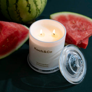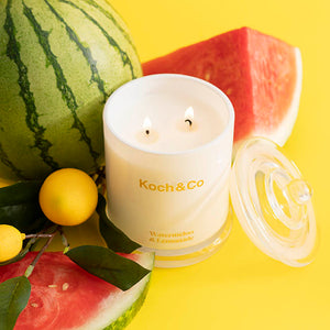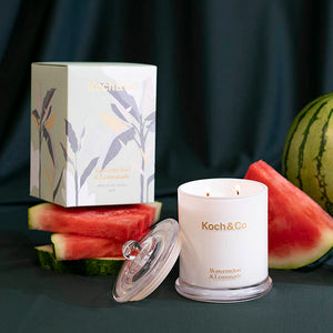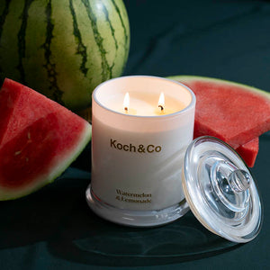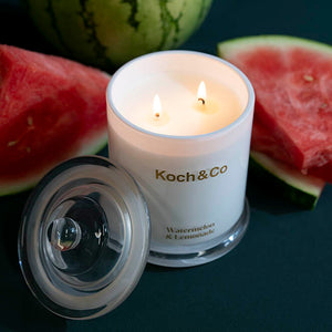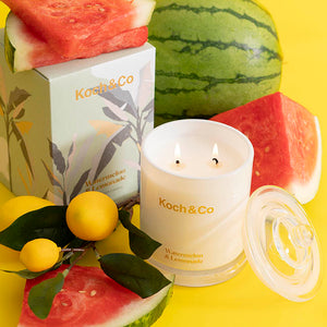 Fresh and invigorating, this double-wick Leisure Scented Soy Candle with Watermelon & Lemonade fragrance is made with natural soy wax. This premium candle has been infused with a long-lasting, refreshing fragrance carefully formulated by top international brands.