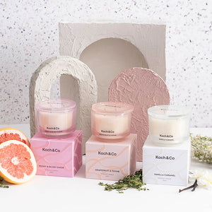 Beautifully packaged in a modern, velvet-flocked box that is completely recyclable and plastic-free, this premium candle has been poured into a tinted white glass vessel.