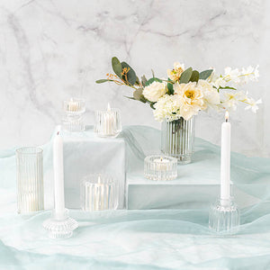 Glass Craft Ripple Vase candle holder features a beautiful ripple pattern. It can be used as a vase as well as a candle holder. Its unique design makes it suitable for modern and classic themes. It measures 6cm in diameter and 16cm high. Fits any of our tealight candles, votive candles 51090012 and 51090013 and pillar candles 5cmD up to 10cmH. Please note: These are sold as single items and not as sets of four.