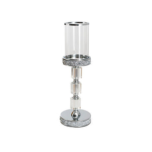 Glass Sleeve Pillar Candle Holder Stand Silver (38cmH)