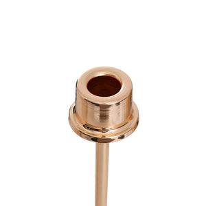 Elevate your candlelit ambiance with our exquisite Gold Metal Single Taper Candle Holder, standing at an impressive 40cm tall with a sturdy 10cm diameter base. The centerpiece of this holder is its 24cm high hurricane sleeve, providing a perfect showcase for your taper candles with its 4.5cm diameter. The juxtaposition of the metallic gold finish against the transparent hurricane sleeve creates a stunning visual contrast, allowing the warm glow of candlelight to dance through the room.