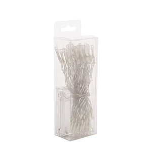 LED battery operated fairy lights. This is a 3m long cord that has 20 diamante reflective lights in cool white. It requires AA batteries that will last about 30 hours. Batteries are not included.