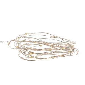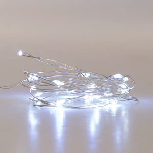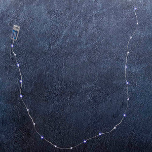 LED battery operated fairy lights. This is a 2m long cord that has 20 diamante reflective lights in cool white. It requires AA batteries that will last about 30 hours. Batteries are not included.