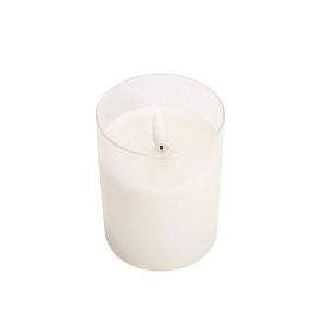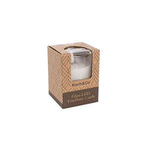 Be mesmerised by the magic of LED event candles. This Glass Trueflame� Flickering LED White pillar candle gives a cosy ambiance like a real candle. It is a safe alternative to decorate your home, weddings and any special events. Featuring a glass holder filled with real wax, long battery lighting life and a realistic flameless glow.