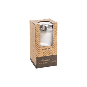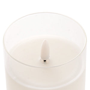 Be mesmerised by the magic of LED event candles. This Glass Trueflame� Flickering LED White pillar candle gives a cosy ambiance like a real candle. It is a safe alternative to decorate your home, weddings and any special events. Featuring a glass holder filled with real wax, long battery lighting life and a realistic flameless glow.