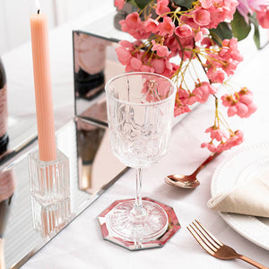 Use our Octagon Mirror Glass Plate to add dimension to centrepieces or displays in events or home decor. These plates are suitable for use with pillar candles, candle holders, and vases.