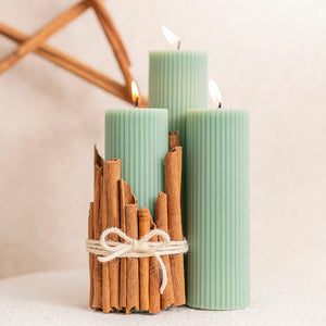 Roman Fluted Pillar Candle Pale Sage (5x15cmH)