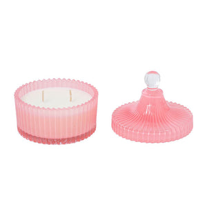 This single wick candle has fresh notes of Lotus Water. From the Delight range, this KERI scented candle comes packaged in a beautiful light pink glass jar with decorative lid. This jar candle is 12.5cm tall and is made of paraffin wax. This scent is available in 3 sizes and has a burn time of up to 15hrs. Candle does not have any packaging and does not come in a box.