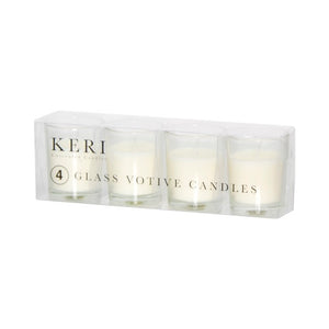 Votive candles are ideal for any occasion or event. You can use this 4 pack of white votive candles to enhance your decor. These glass votive candles are unscented and come in individual jars. Each jar measures 5cm in diameter. Burn time of each votive is 9 hours.